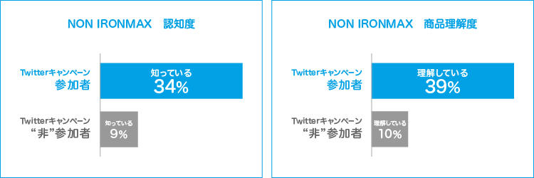 ・「NON IRONMAX商品理解度」は、Twitterキャンペーン参加者が非参加者と比べ29ポイント高い