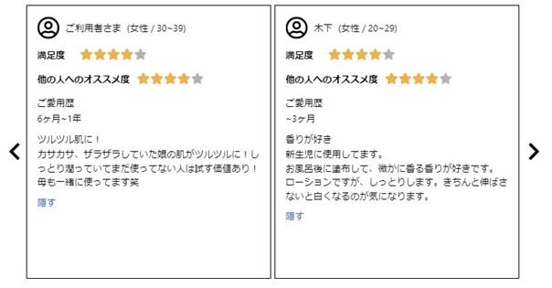 ベビースキンケアブランド「ALOBABY」では、公式通販サイトにおいてLetroを活用し、レビューの掲載を行っています。レビューを投稿している人がどんな人なのか、どれほど満足しているのかといった情報を掲載することによって、レビューの訴求力を高めるために「愛用歴」「オススメ度」を表現するレビュー項目を設計して利用者からレビューを収集し、掲載しました。その結果、「愛用歴」が最も長いレビューのCVRが他に比べて高い結果となり、高い訴求効果をもたらしているということがわかりました。