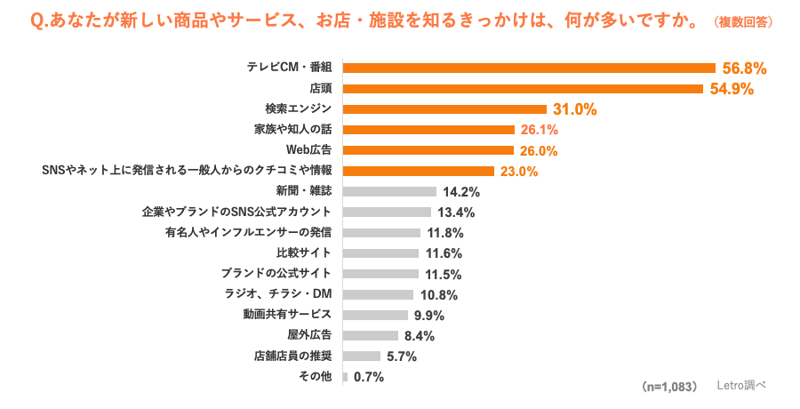 1. 新しい商品やサービス、お店・施設を知るきっかけ