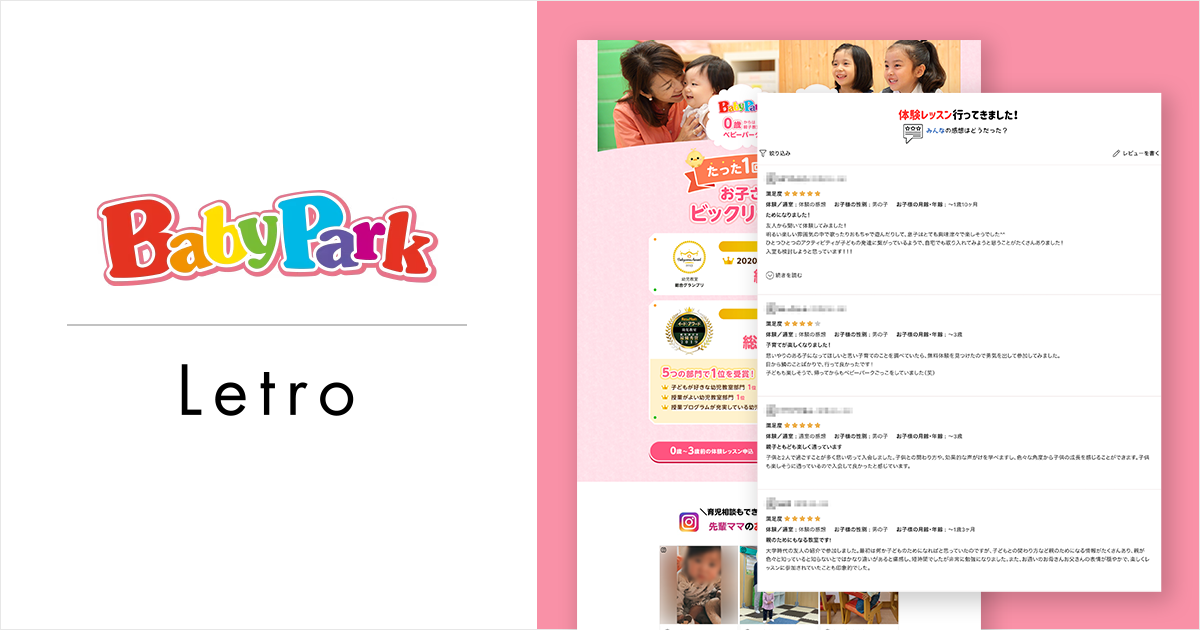 企業のマーケティングDXを支援するアライドアーキテクツ株式会社(東京都渋谷区、代表取締役社長 CEO:中村壮秀、証券コード:6081)でSaaS事業を展開するプロダクトカンパニー(プレジデント:村岡弥真人)は、株式会社TOEZ(東京都中央区、代表取締役:小林忠嗣、以下 TOEZ)に対し、当社の運用型UGC(※1)ソリューション「Letro(レトロ)」の提供を開始しました。TOEZは運営する親子教室「ベビーパーク」の申し込みサイトにLetroを活用してレビューを掲載したことで、申し込み率125%を実現しました。