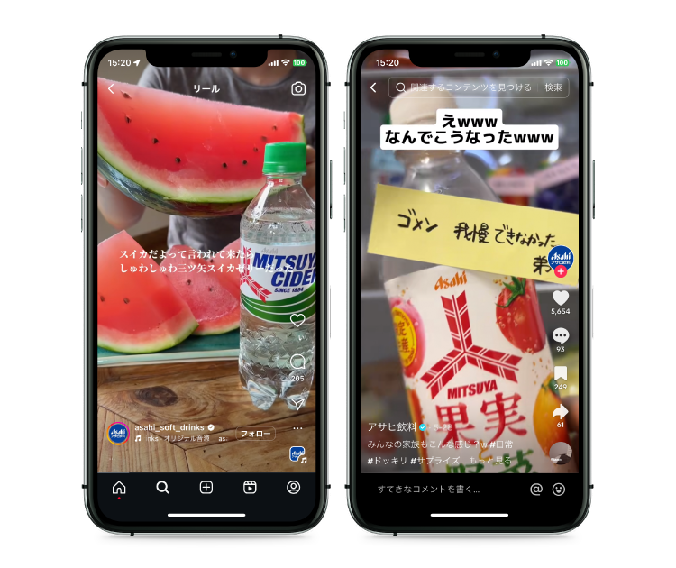アサヒ飲料株式会社が、2024年5月に開始したTikTokアカウント運用において、初月のオーガニック投稿が122.2万再生を達成、さらに、2024年7月に開始したInstagramリールのオーガニック投稿においても初投稿が635.5万再生されたほか、他投稿でも900万回再生を記録するなど、複数のプラットフォームで継続的に高いパフォーマンスを示しています(2024年10月1日時点)。今後もアサヒ飲料の強力なブランド力と、SNSプラットフォーム特性を熟知した当社のクリエイティブ企画制作力の相乗効果で大規模リーチを継続し、ブランド認知の向上とファンベースの醸成拡大を推進してまいります。