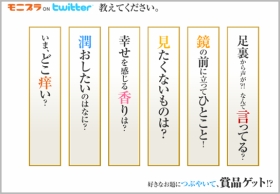 「Twitterキャンペーン on モニプラ」を提供開始するに当たり、モニプラ参加企業から以下の5社とモニプラ運営事務局がTwitterキャンペーンをモニプラサイト上で開催いたします。