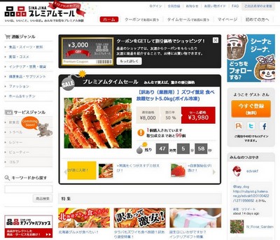 「品品プレミアムモール」では、エリアやジャンルごとに「1日につき、1商品(1店舗)」の取引を基本とする他社サイトとは異なり、お得な共同購入が楽しめる「プレミアムタイムセール」が様々なショップで毎日実施されています。クチコミを利用してセール情報を友人などに紹介し、一定の購入希望者を集めることで取引が成立し、お得な割引価格で商品やサービスチケットが入手できます。