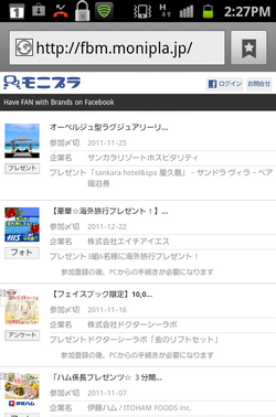 Facebookアプリ「モニプラ」モバイル版URL : http://fbm.monipla.jp/