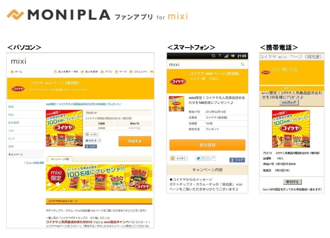 「モニプラファンアプリ for mixi」サイトURL : http://fan-app-mixi.monipla.jp/
