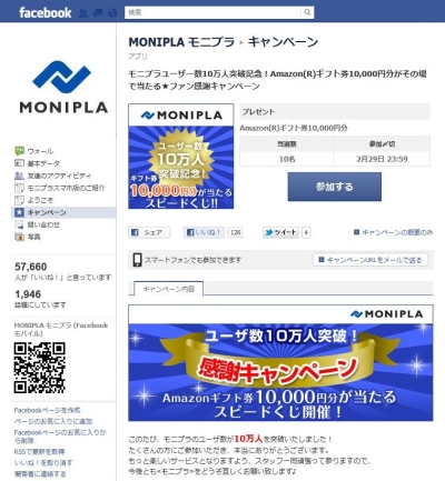 ・Facebookアプリ「モニプラ」モバイル版URL : http://fbm.monipla.jp/
