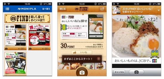 モニプラFIND!は、スマートフォンのカメラ機能を利用した、企業向けのO2Oプロモーション支援サービスです。モニプラFBのスマートフォン特化型キャンペーン機能として、現在はiPhoneアプリ上でサービスを提供しています*1。