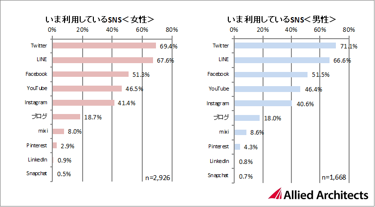 企業のSNSマーケティングを総合的に支援するアライドアーキテクツ株式会社(本社:東京都渋谷区、代表取締役社長:中村壮秀、証券コード:6081)は、Facebook、TwitterなどをはじめとするSNSの利用実態について調査するため、約4,600名を対象にアンケートを実施いたしました。