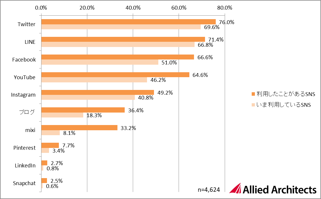 企業のSNSマーケティングを総合的に支援するアライドアーキテクツ株式会社(本社:東京都渋谷区、代表取締役社長:中村壮秀、証券コード:6081)は、Facebook、TwitterなどをはじめとするSNSの利用実態について調査するため、約4,600名を対象にアンケートを実施いたしました。