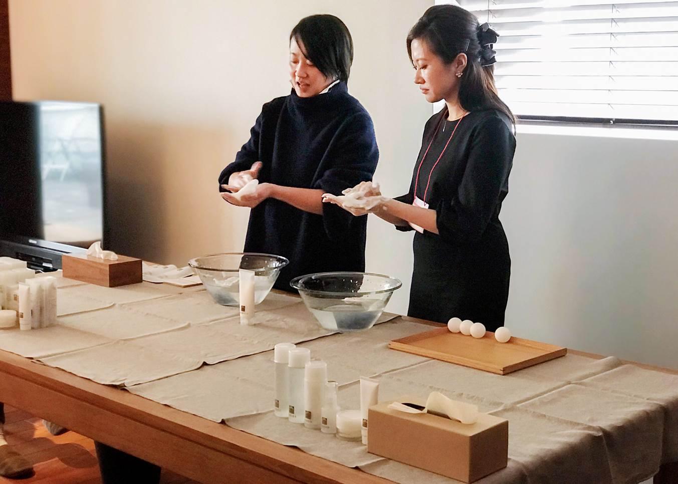 そこでアライドアーキテクツが提供する、在日中国人の商品に関する「SNSクチコミ」や「生の声」を拡散・収集・活用できる「チャイナタッチ」を利用し、日本最大級の在日中国人女性コミュニティー「BoJapan」のメンバーを対象にサンプリングキャンペーンと体験会を実施しました。BoJapanメンバーの高いクチコミ生成率や購買への影響(※)を踏まえた上で、深い体験・理解が反映されたクチコミの創出を最も重視し、サンプリングとあわせて松山油脂の世界観を体感しきちんと理解してもらえる体験会を企画しました。