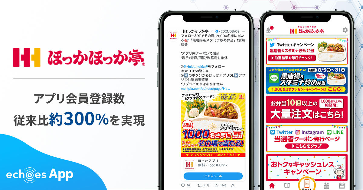 ほっかほっか亭がechoesを活用し公式アプリ「ほっかアプリ」の ダウンロードキャンペーンを実施、アプリ会員登録数従来比約300%増を実現