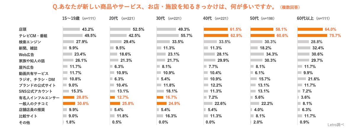 1. 新しい商品やサービス、お店・施設を知るきっかけ