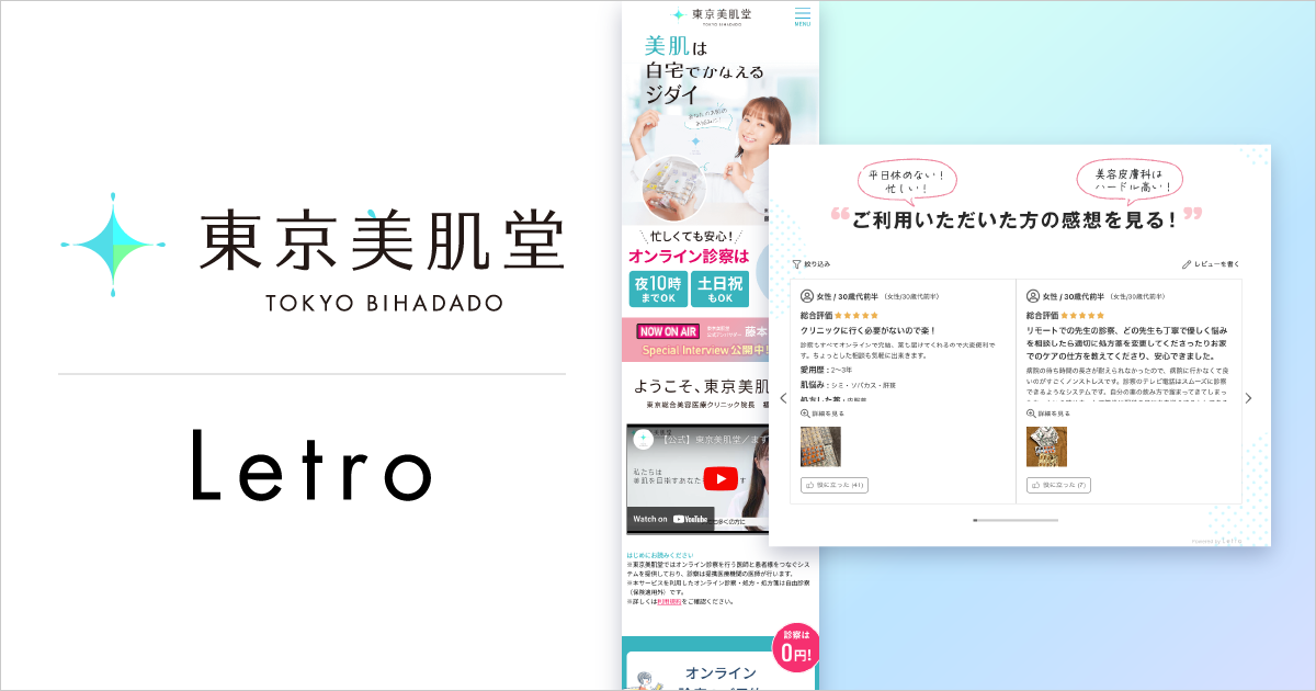 オンライン美肌相談プラットフォーム「東京美肌堂」がLetro導入、レビュー掲載で予約率が従前比38%増加