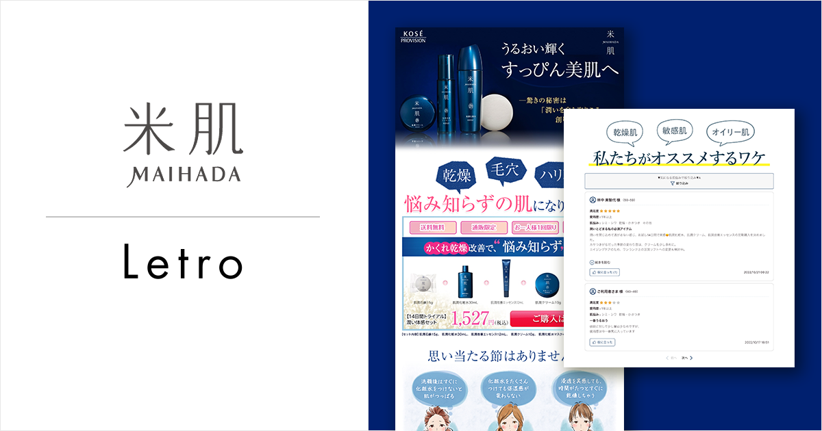 コーセーのスキンケアブランド「米肌」がLetro活用、 レビューを最適化することで新規獲得用LPのCVR1.27倍を実現