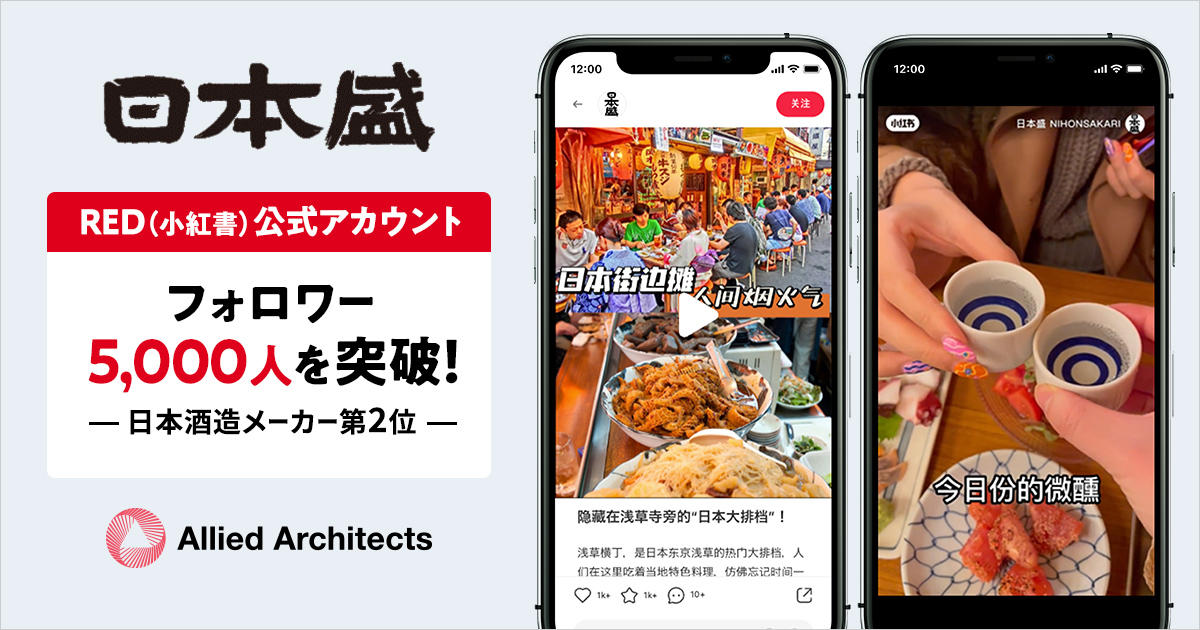 日本盛のRED(小紅書)公式アカウントがアライドアーキテクツ支援のもと、フォロワー5,000人を突破し日本の酒造メーカーとしてRED企業公式アカウントフォロワー数が第二位に