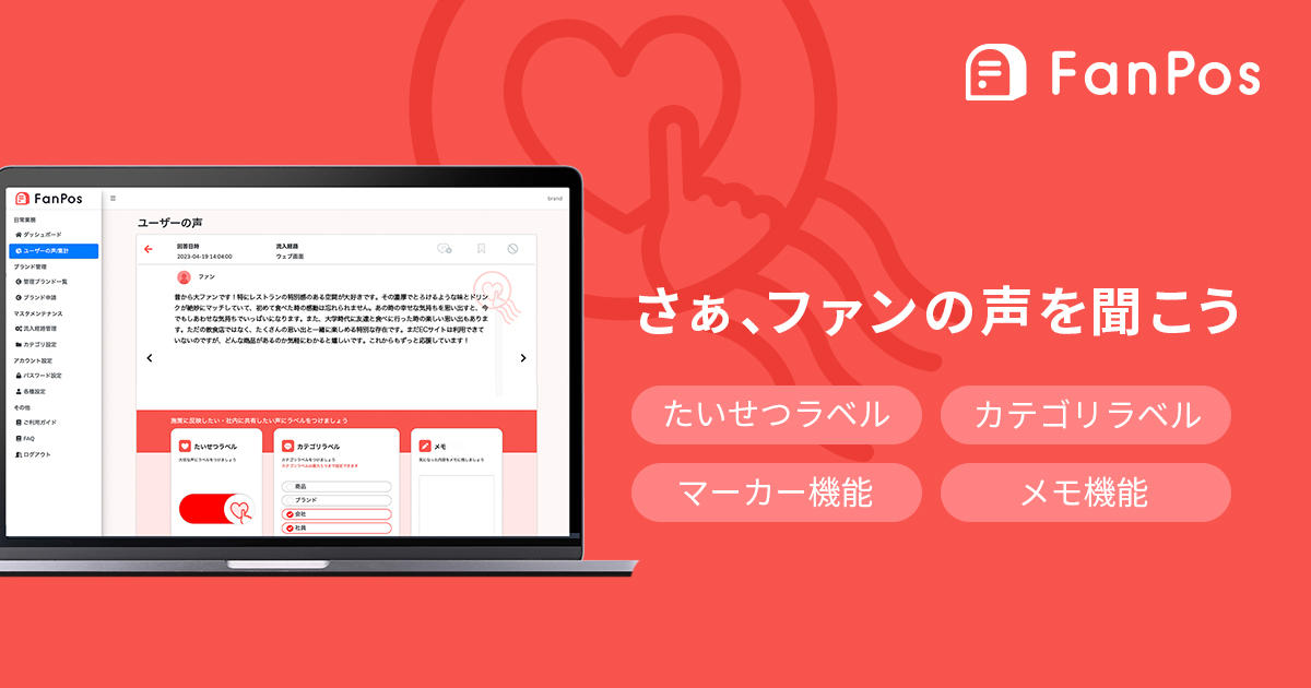 アライドアーキテクツとファンベースカンパニーが共同開発したファンの声を傾聴できるWEBサービス「FanPos(ファンポス)」が、ファンの声をマーケティングや社内施策などに活用しやすくする4つの新機能を追加