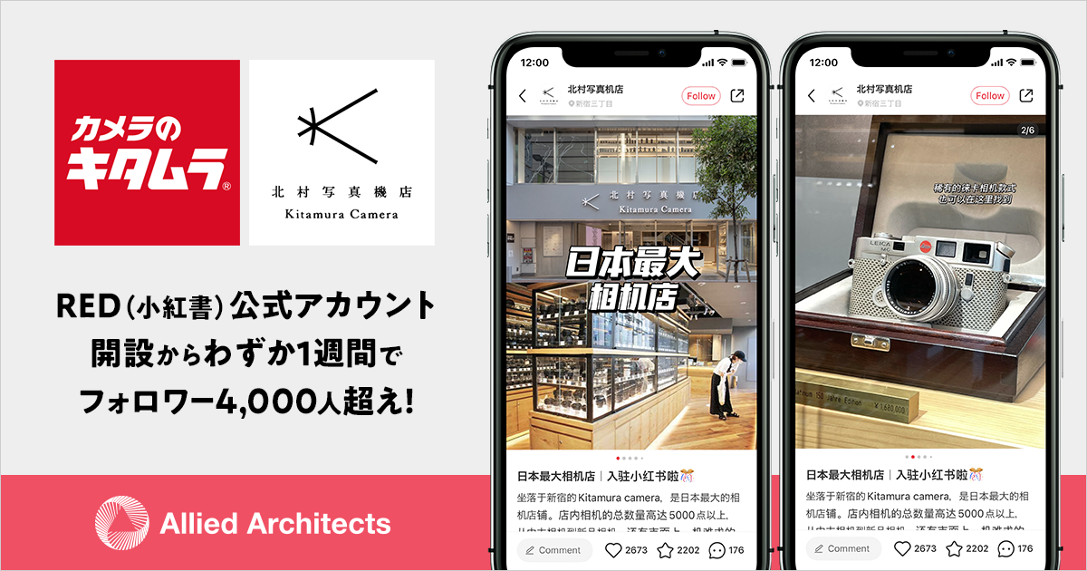 カメラのキタムラRED(小紅書)公式アカウント「新宿 北村写真機店」が開設からわずか1週間でフォロワー4,000人超え! アライドアーキテクツが中国における認知向上とインバウンド観光客の誘致を支援