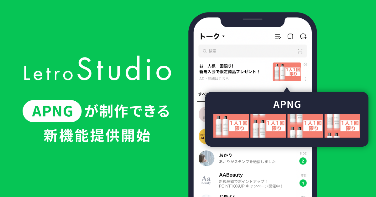 LetroStudio、LINE広告の推奨入稿形式「APNG」が制作できる新機能の提供を開始