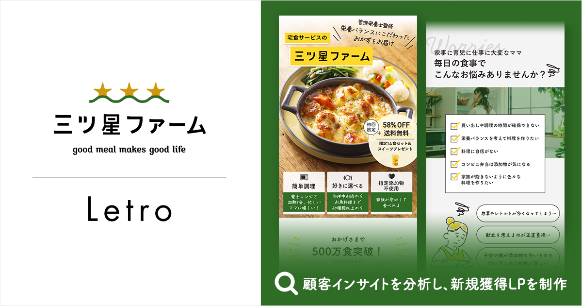 Letro、冷凍のおかず定期便サービス「三ツ星ファーム」のUGCをもとに顧客インサイトを分析し、新規獲得LPの制作・運用を支援