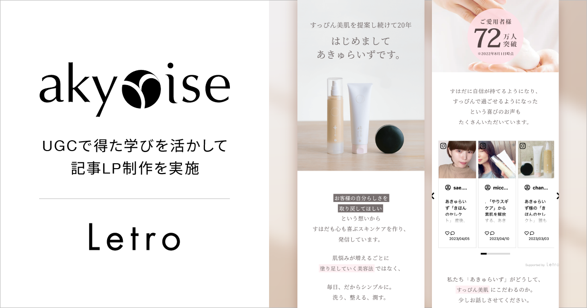 Letro、スキンケアブランド「あきゅらいず」の記事LPの制作を支援