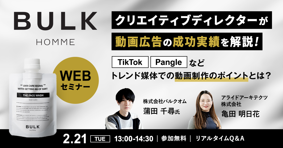 【LetroStudio無料WEBセミナー】 「バルクオム」動画広告クリエイティブディレクターが登壇! 「トレンド媒体での動画制作のポイントとは?」を2月21日に開催
