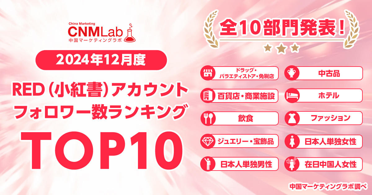 フォロワー数増加の共通点は質の高い動画コンテンツ!中国マーケティングラボ(CNMLab)が全10部門の2024年下半期REDアカウントフォロワー数ランキングTOP10を発表