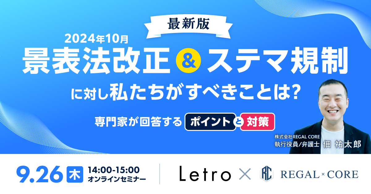 【無料WEBセミナー】【最新版】2024年10月景表法改正&ステマ規制に対し私たちがすべきことは? ~ポイントと対策を専門家が回答~
