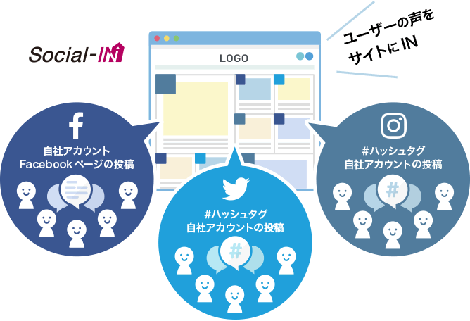Twitter,Instagram上のハッシュタグ付き投稿や写真、Facebook上のクチコミなど